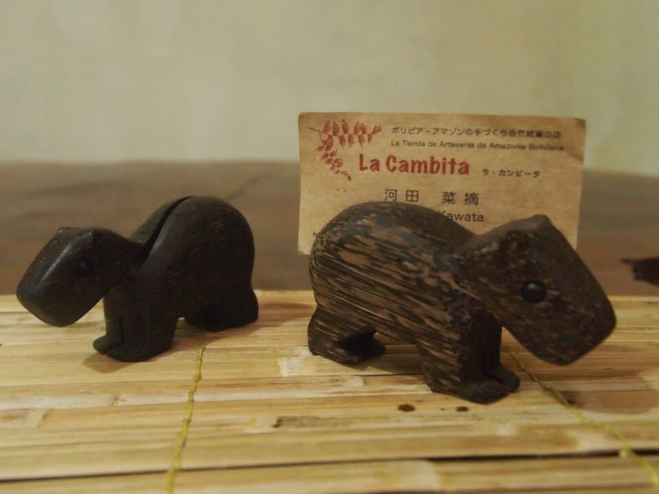 黒いヤシの木彫りのフォトスタンド1個、カピバラの形。
