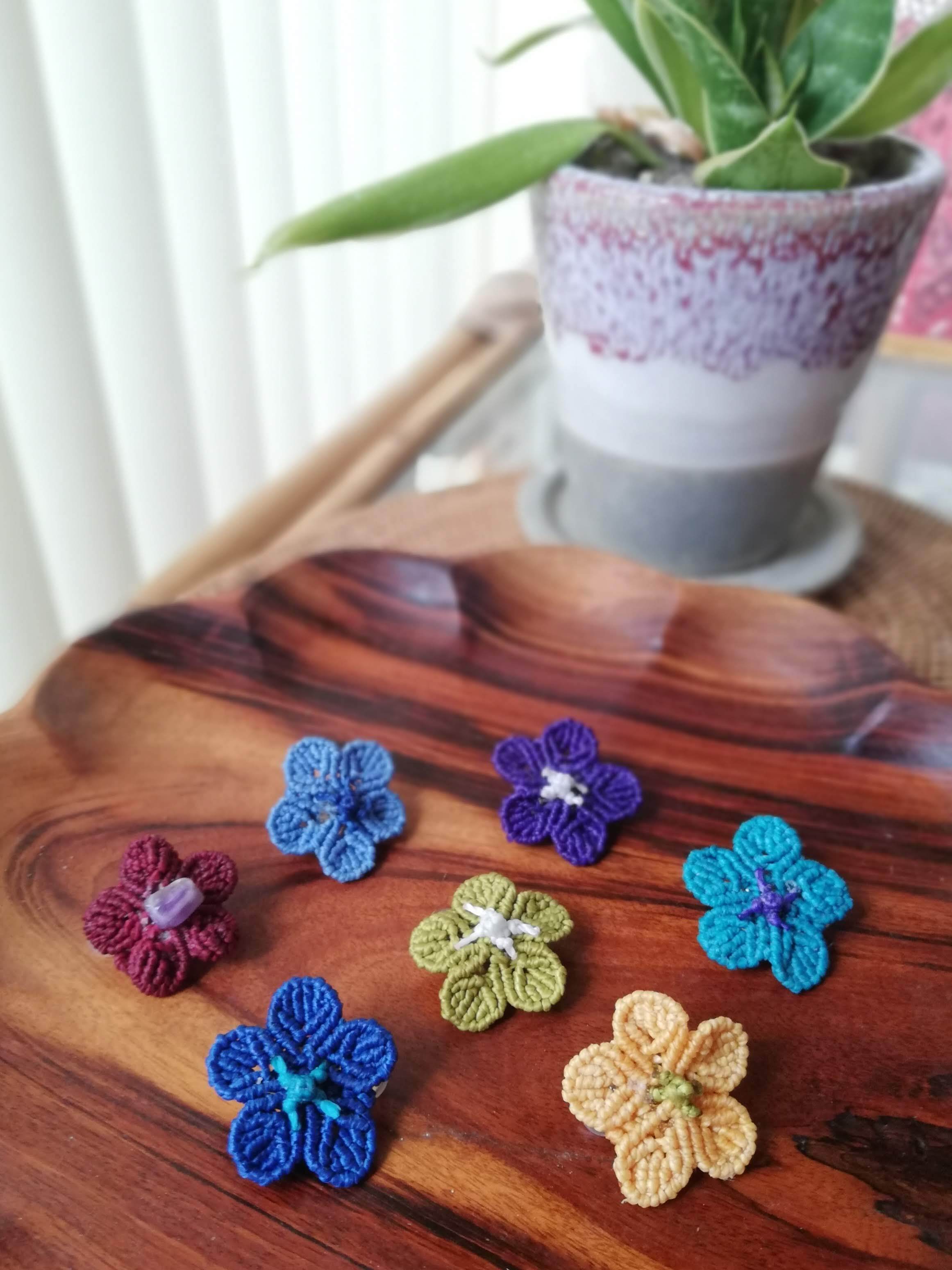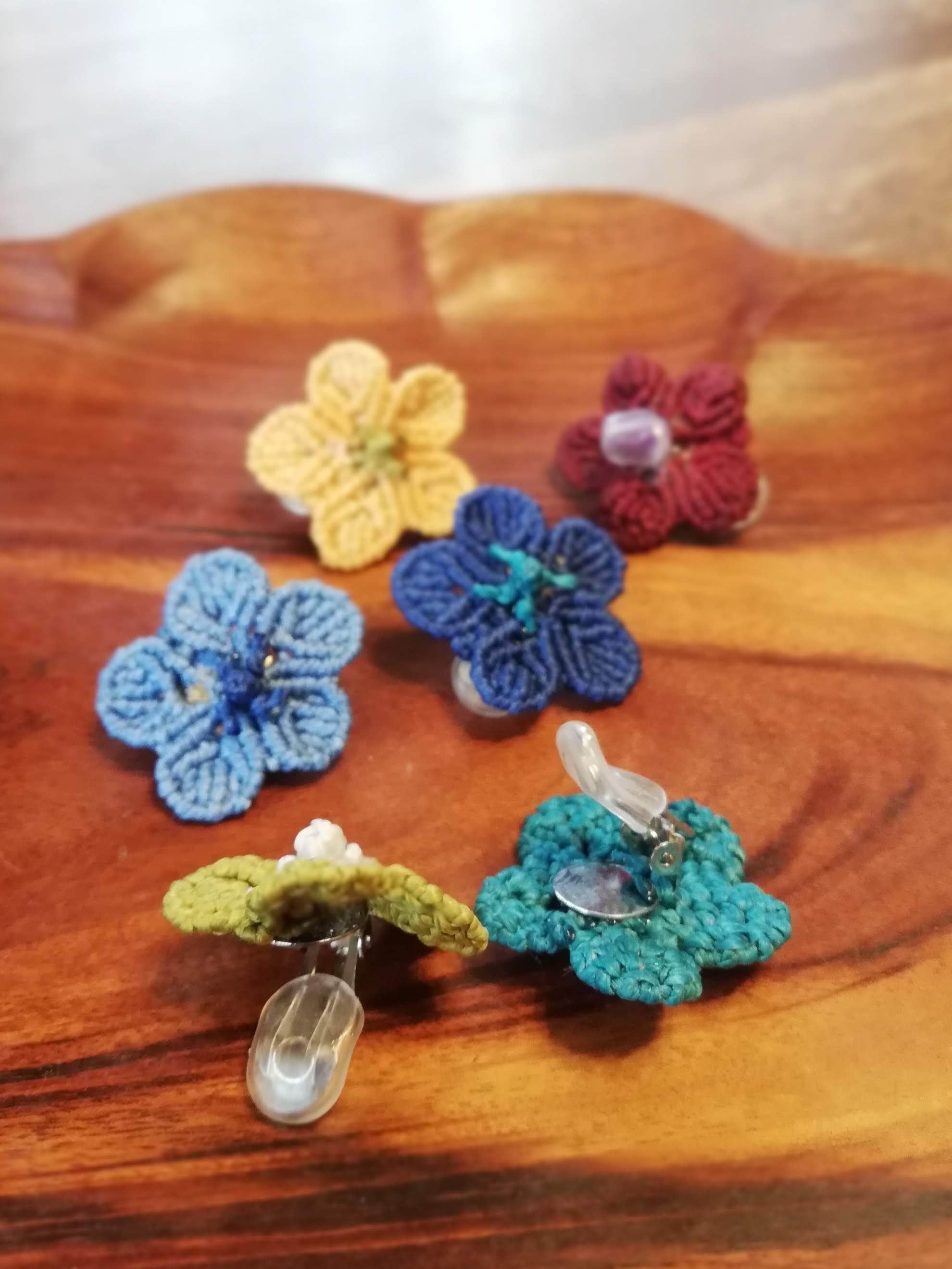 マクラメ編みで作ったお花のついたマスククリップ1個