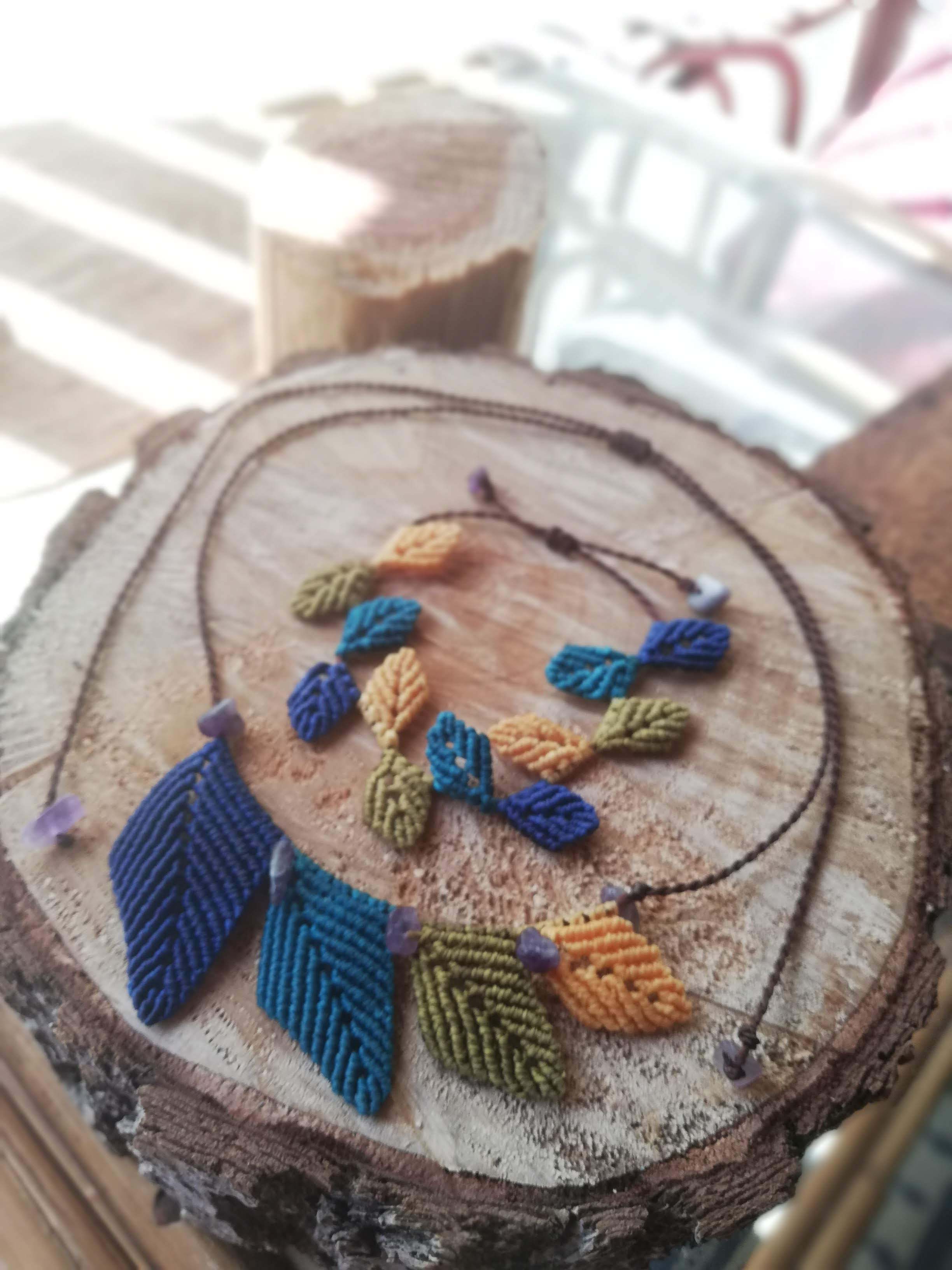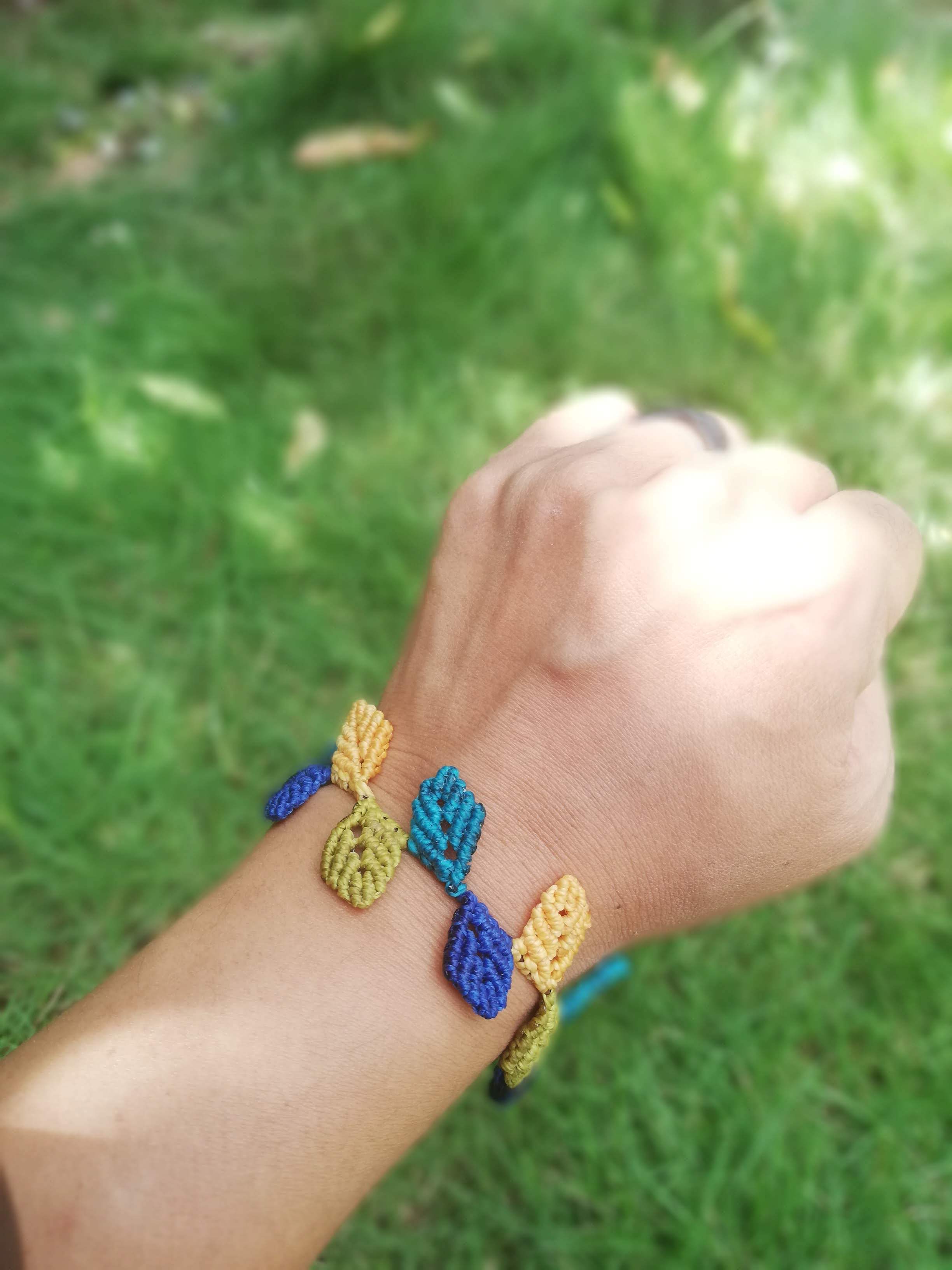 色違いの葉っぱがレーンになったマクラメ編みのブレスレット。
